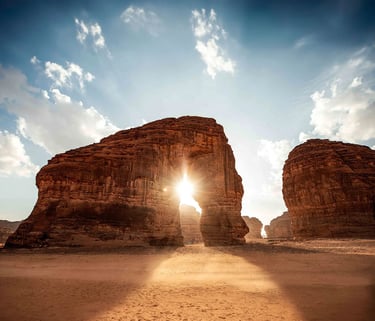 وكأن الطبيعة أبت إلا أن تشارك الإنسان في صياغة هذا الإرث المذهل، فشكلت عبر آلاف السنين، وبأيدي الرياح وعوامل التعرية، "جبل الفيل". يقف هذا الطود الرملي الضخم بشموخٍ آسر وسط الرمال الذهبية، كحارس صامت يراقب تعاقب الأزمان وتبدل الوجوه والقوافل.